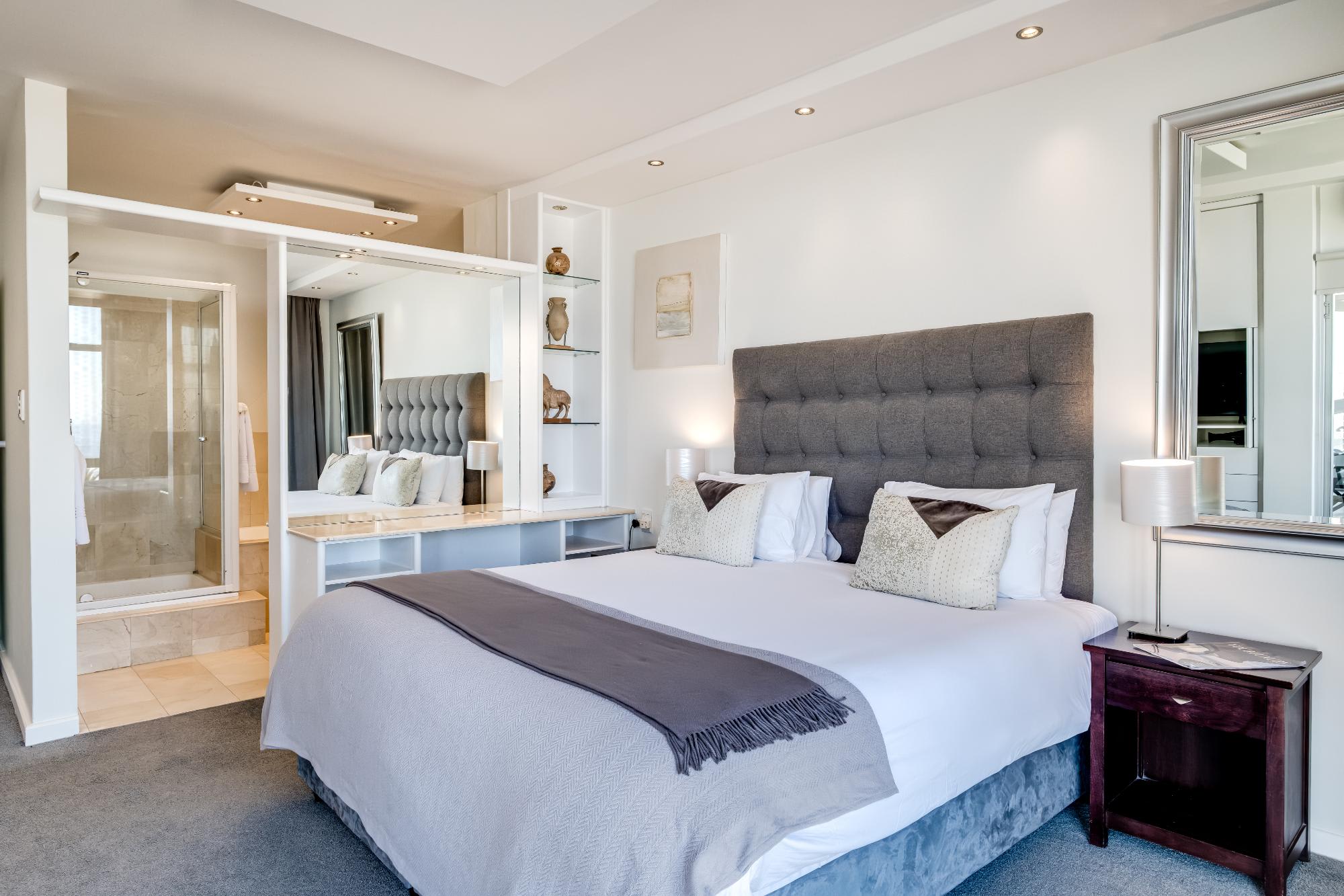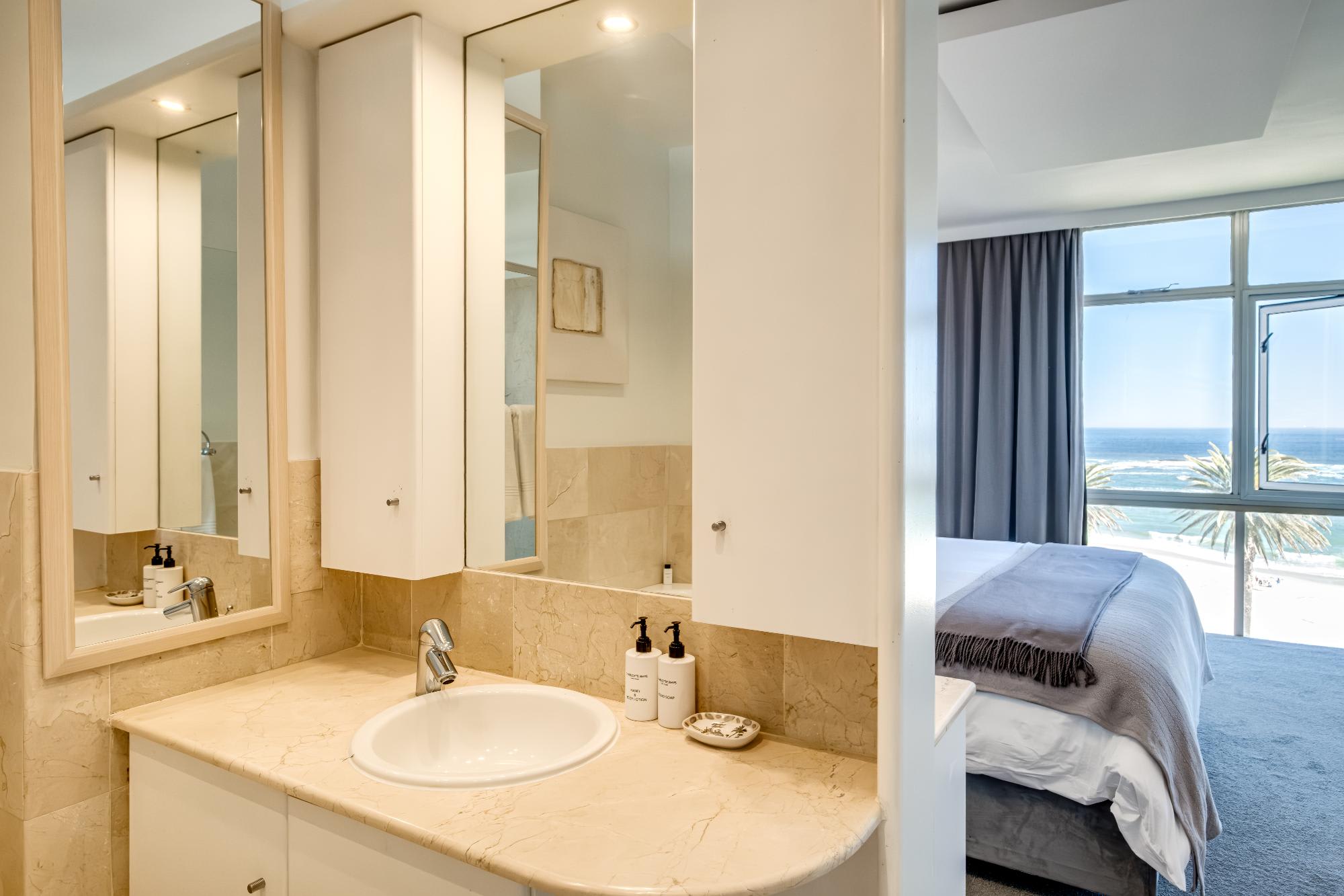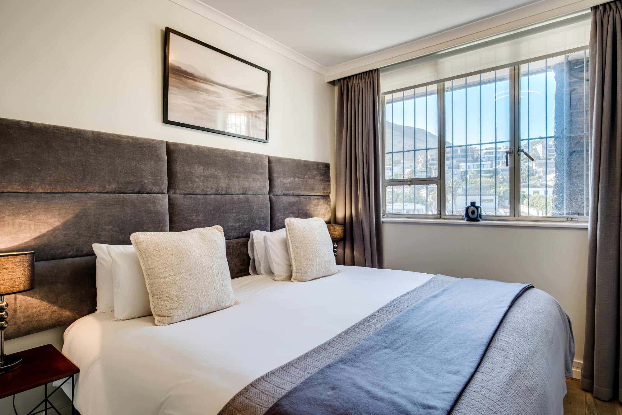 Situated in the scenic suburb of Camps Bay, Cloud 9 offers a tranquil escape with stunning sea views, just a short stroll from the vibrant beachfront and the famous Camps Bay promenade. This beautifully designed apartment provides the perfect blend of comfort and style, featuring a spacious main bedroom with a king-sized bed, en-suite bath and shower, and direct access to a private balcony overlooking the ocean. The second bedroom, easily adaptable from twins to a king, offers mountain views and a dedicated bathroom with both a shower and bath.