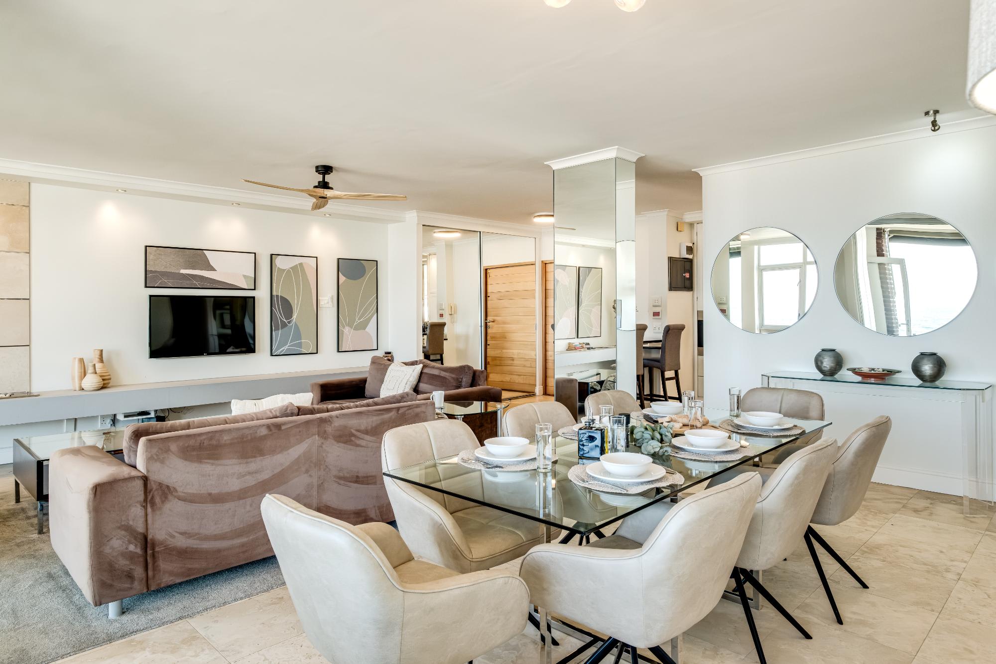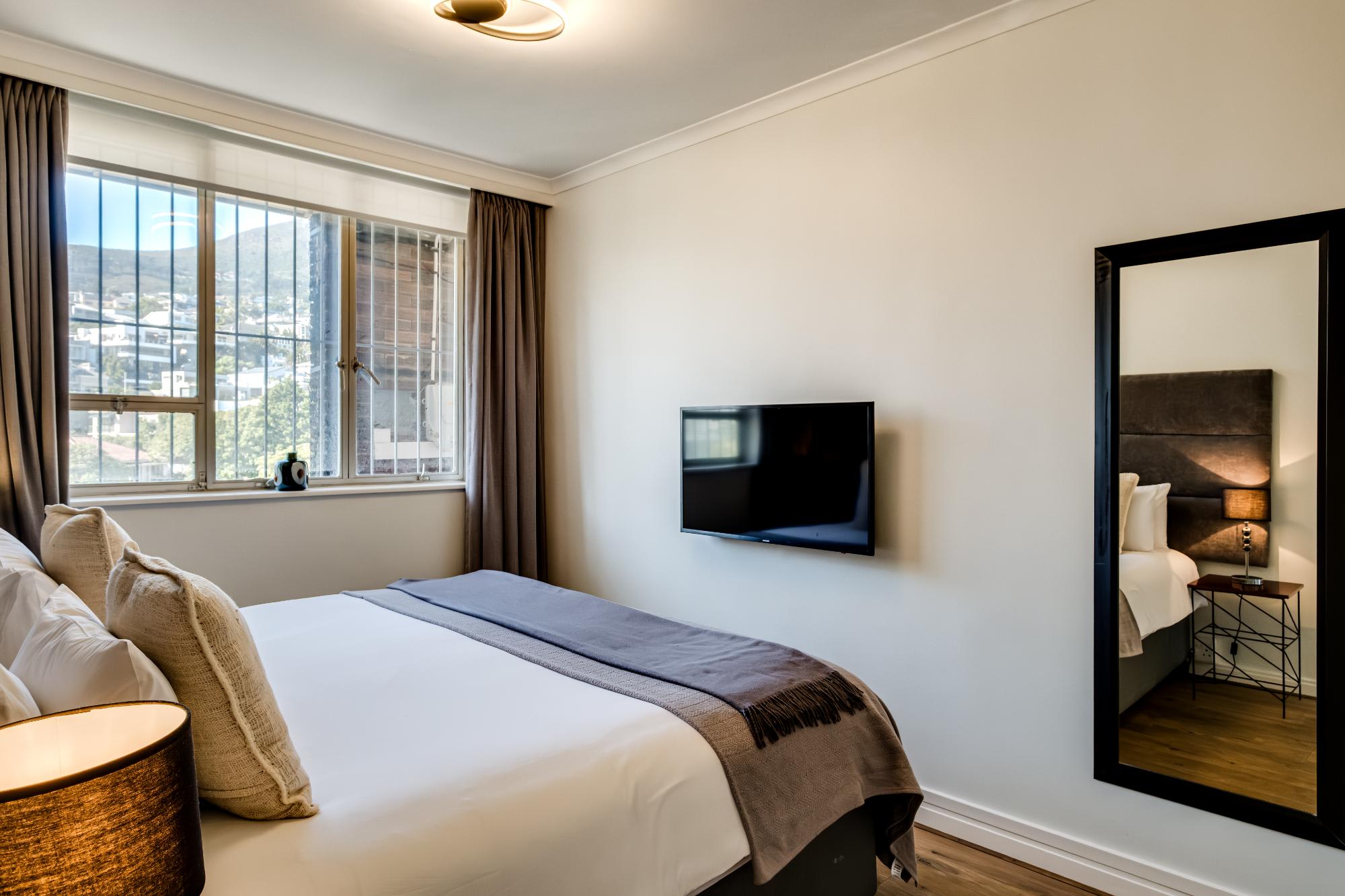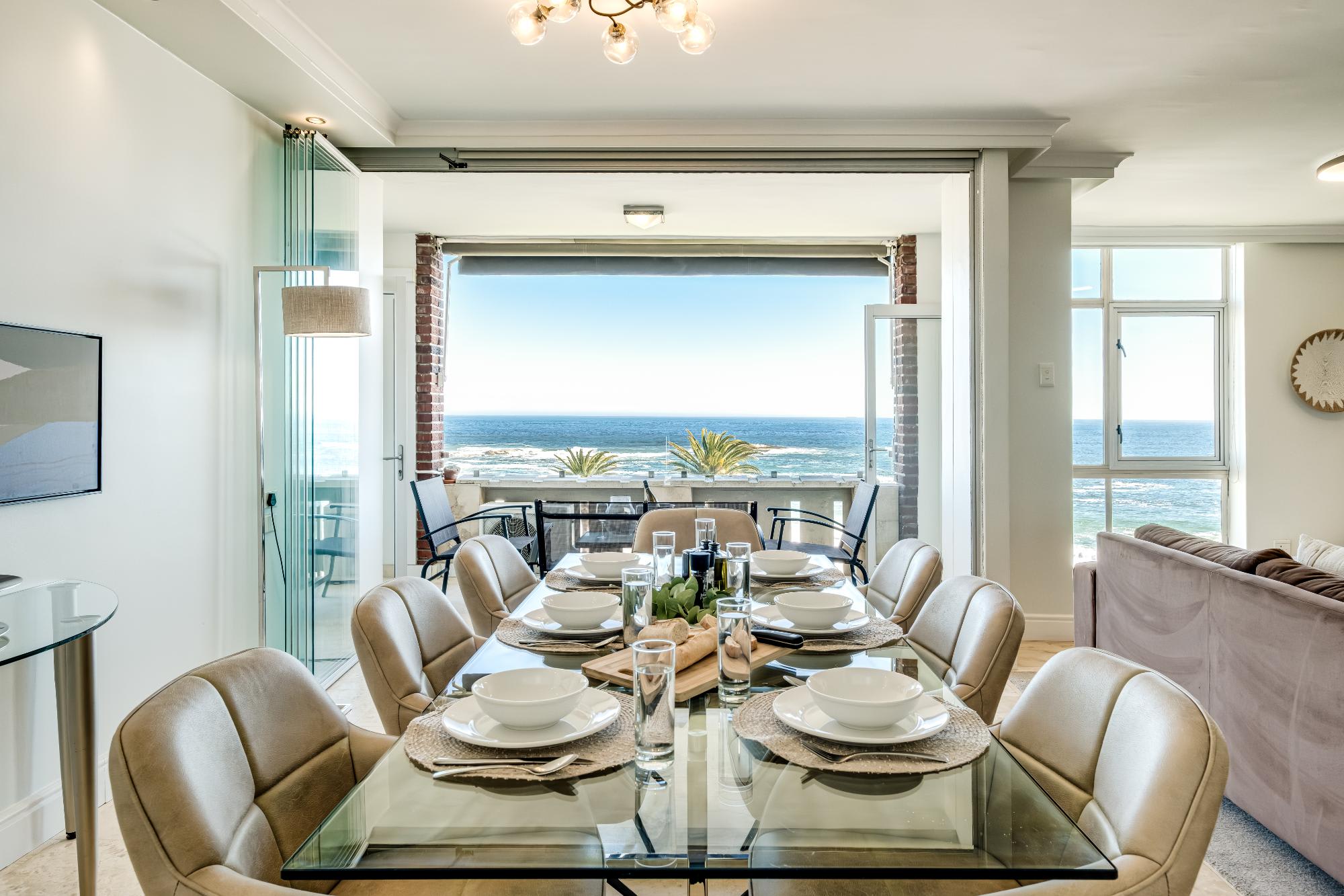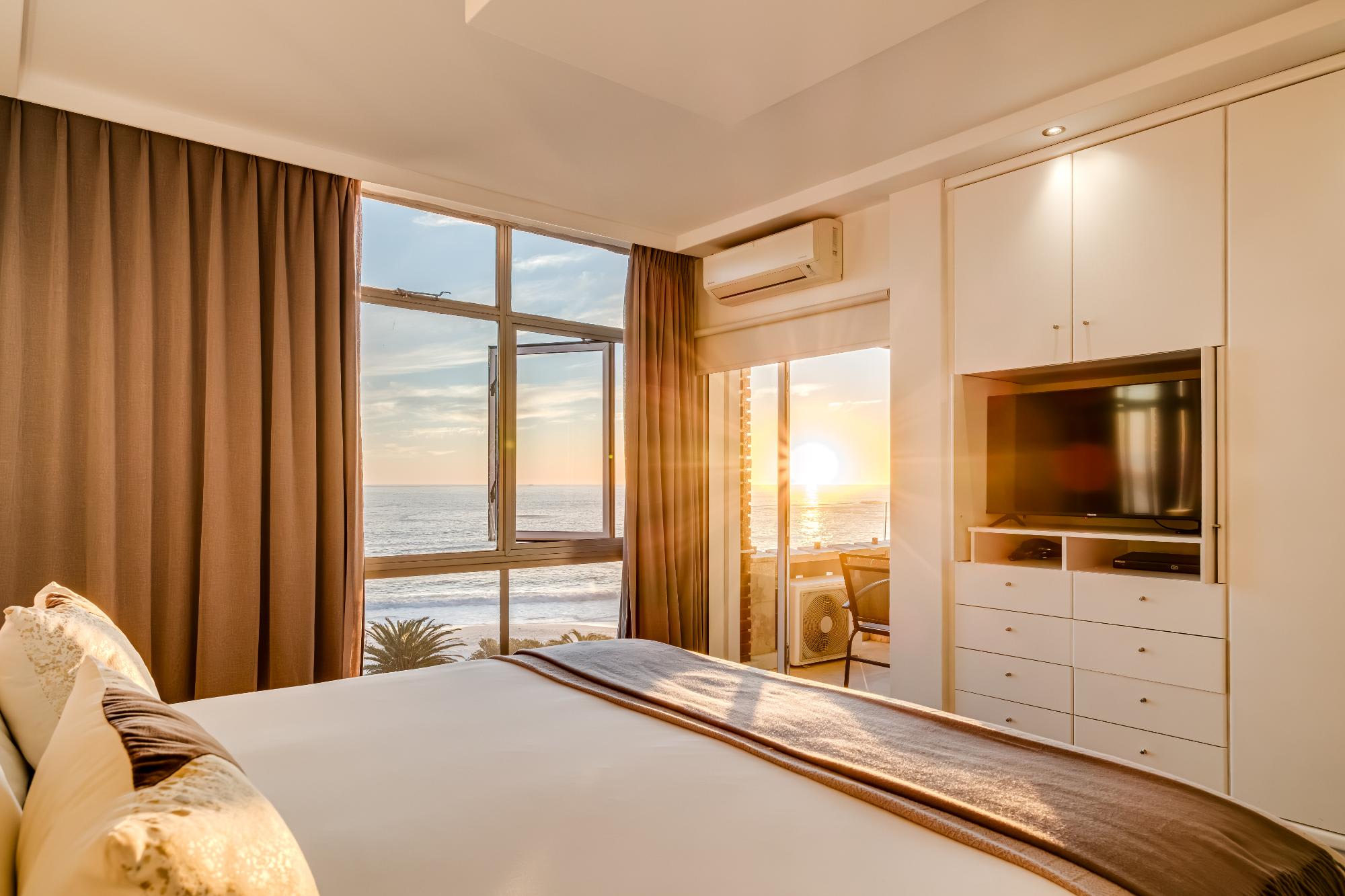 Situated in the scenic suburb of Camps Bay, Cloud 9 offers a tranquil escape with stunning sea views, just a short stroll from the vibrant beachfront and the famous Camps Bay promenade. This beautifully designed apartment provides the perfect blend of comfort and style, featuring a spacious main bedroom with a king-sized bed, en-suite bath and shower, and direct access to a private balcony overlooking the ocean. The second bedroom, easily adaptable from twins to a king, offers mountain views and a dedicated bathroom with both a shower and bath.