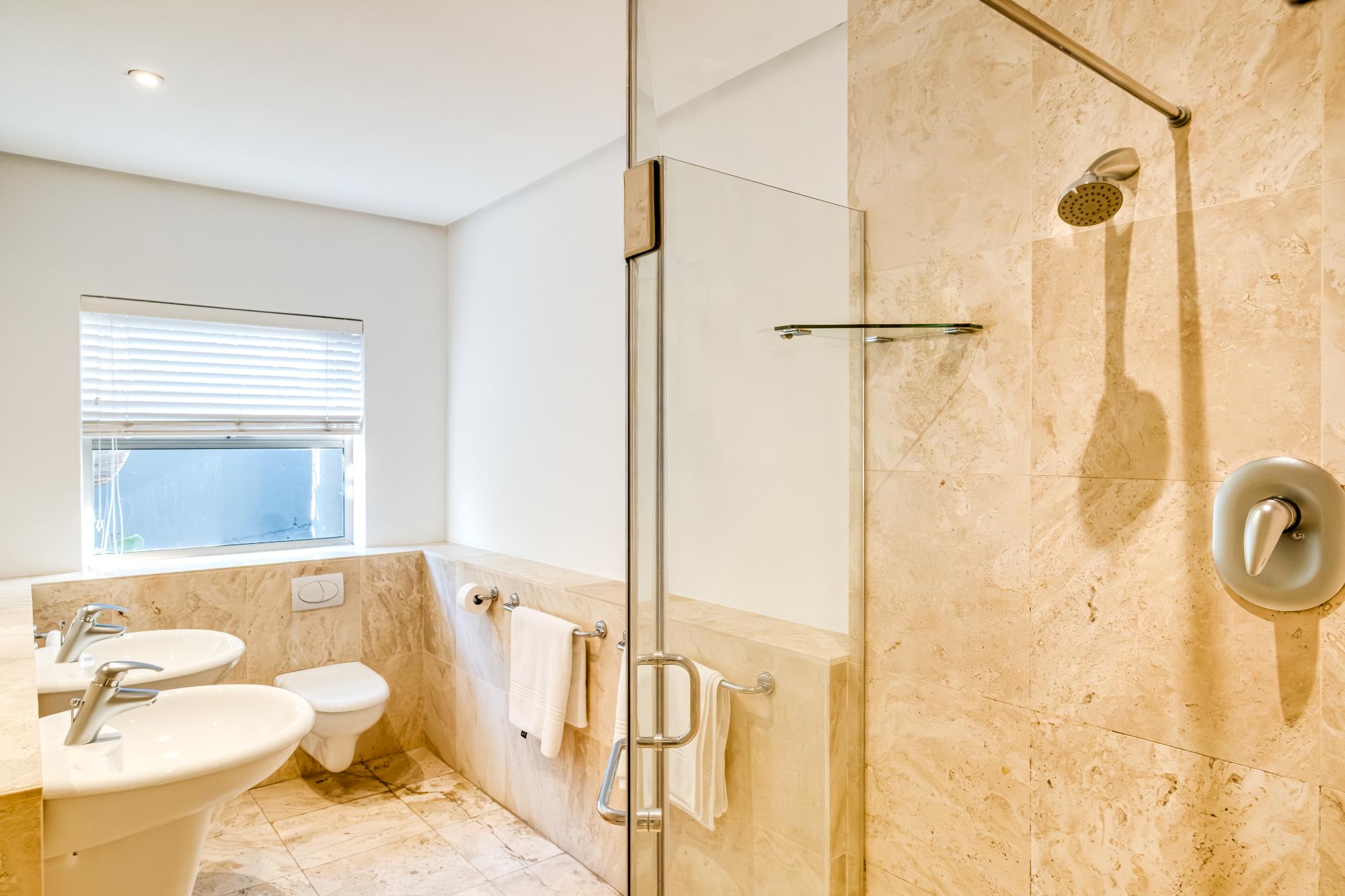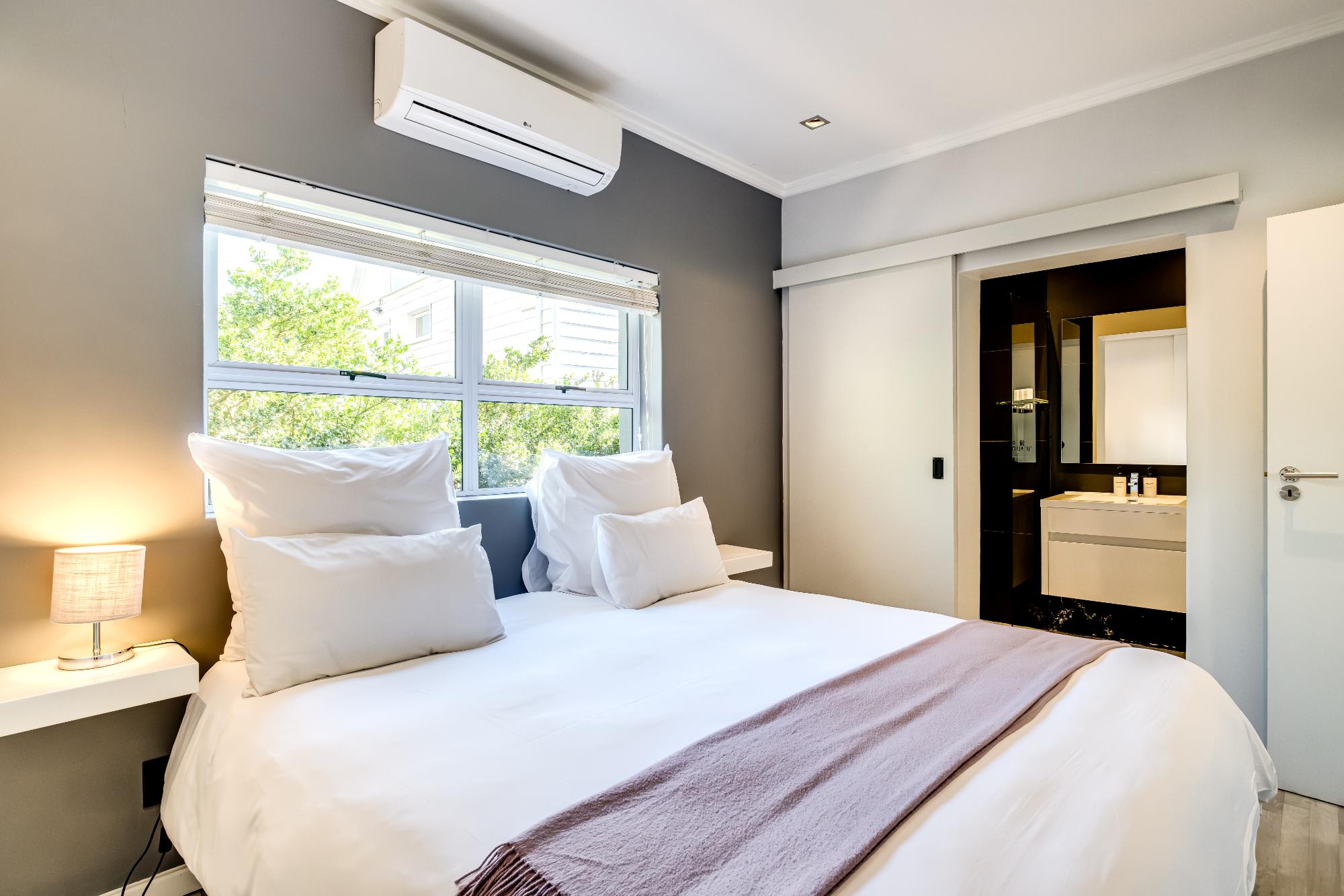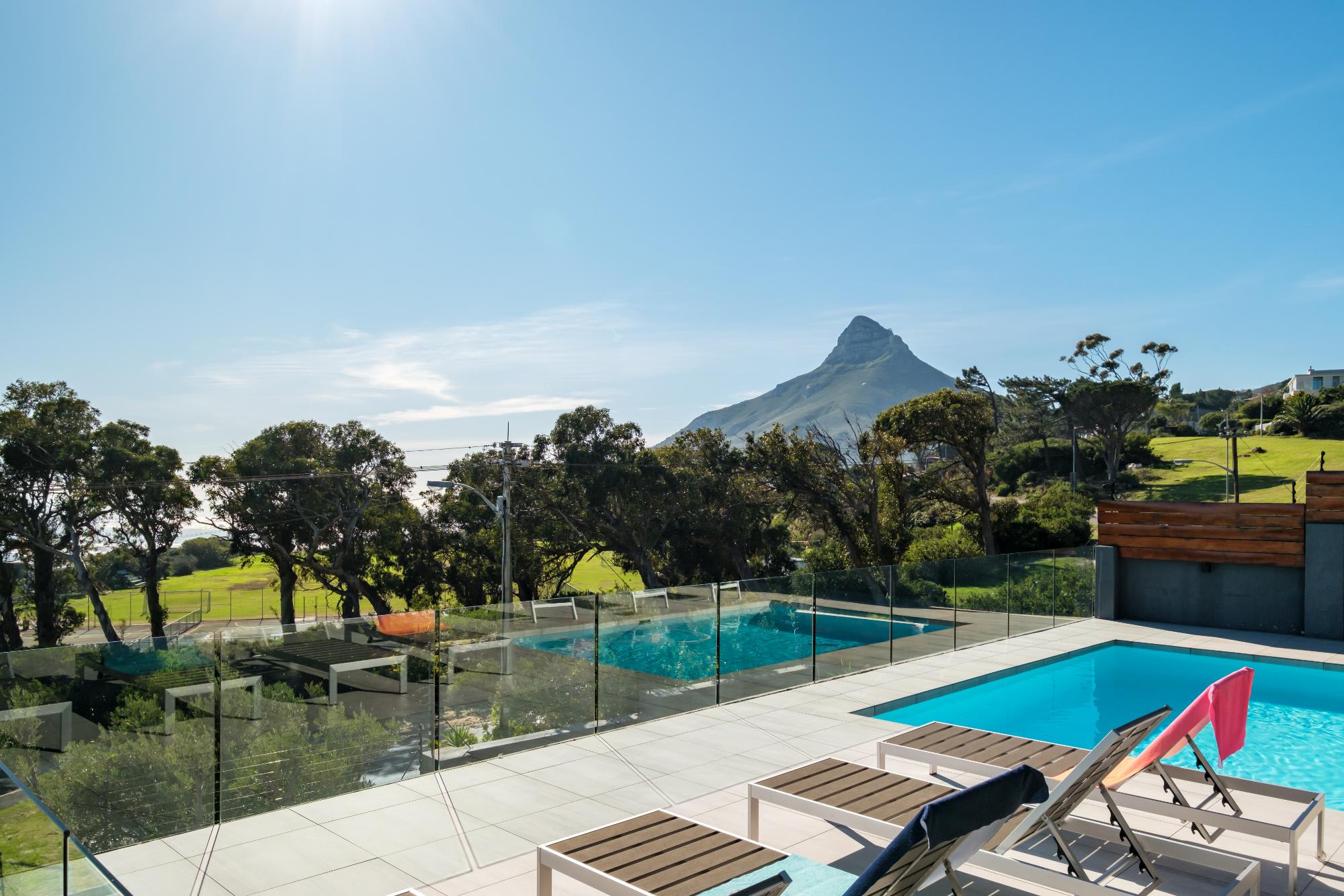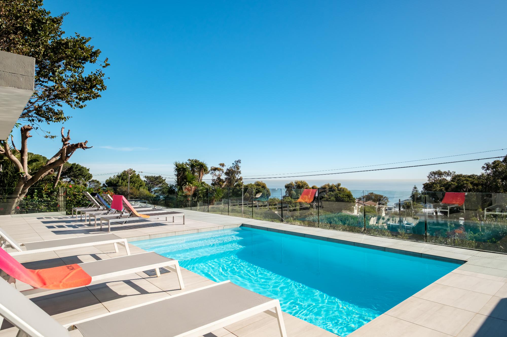 Valtameri is a spacious villa in the prestigious suburb of Camps Bay, offering views of the ocean and Lions Head. This five-bedroom home features comfortable rooms, each with air conditioning and en-suite bathrooms. The master bedroom includes a king bed, ensuite with bath and shower, and double vanity, while the remaining rooms offer king or queen beds and well-designed bathrooms.