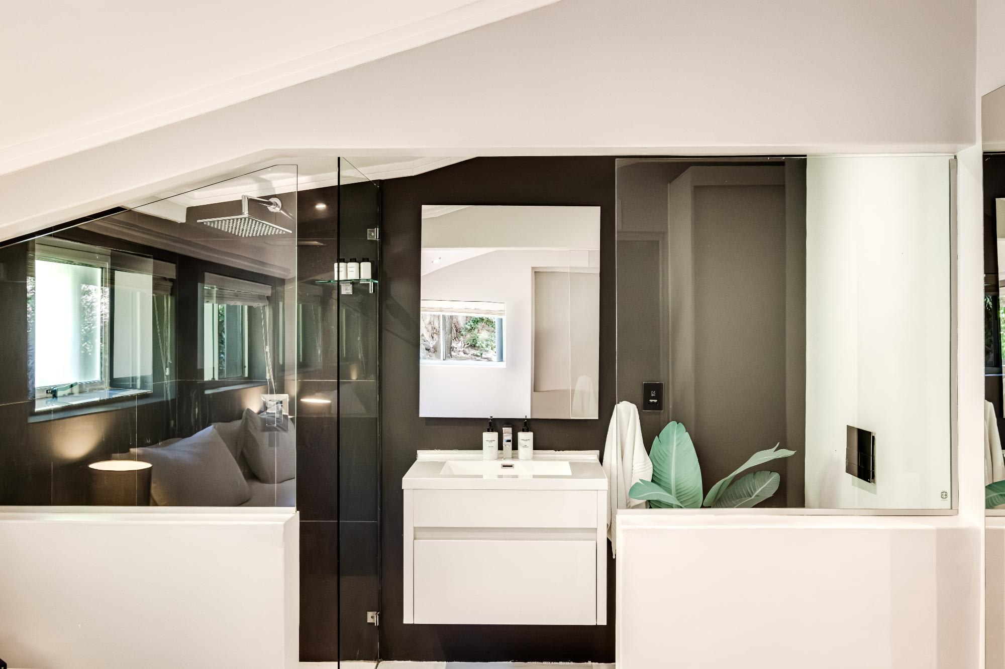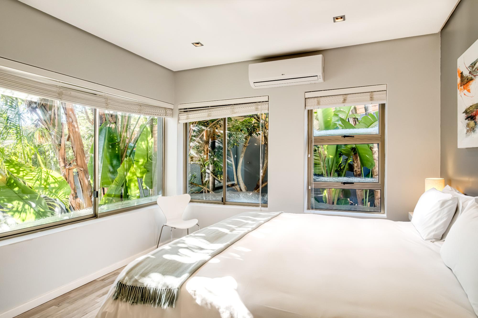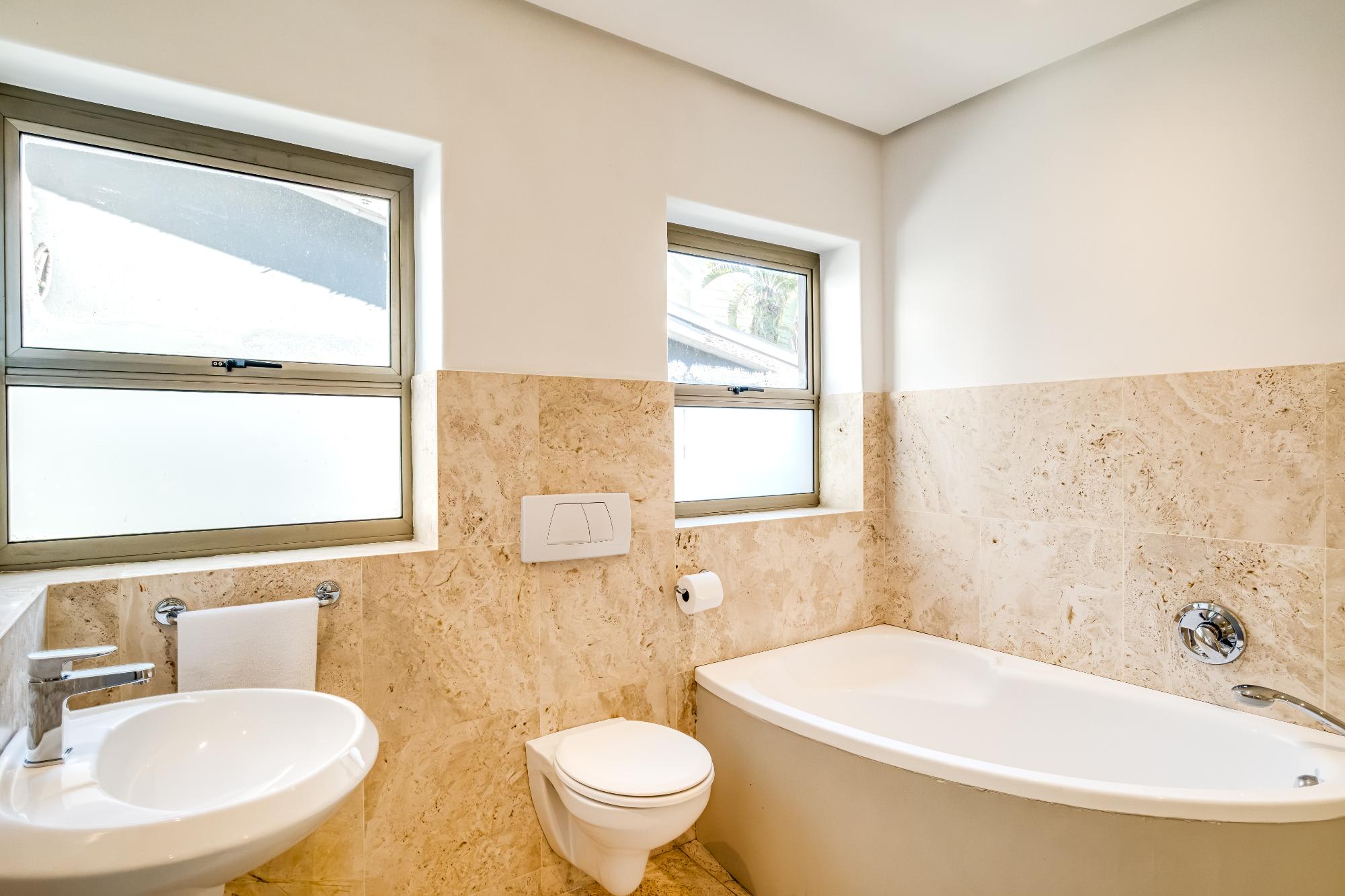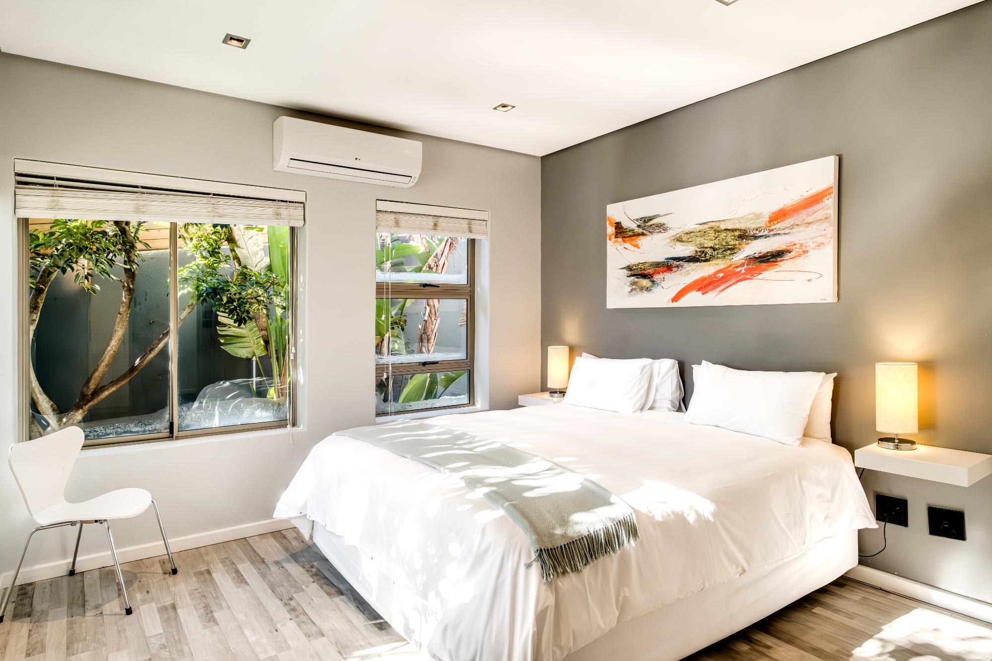 Valtameri is a spacious villa in the prestigious suburb of Camps Bay, offering views of the ocean and Lions Head. This five-bedroom home features comfortable rooms, each with air conditioning and en-suite bathrooms. The master bedroom includes a king bed, ensuite with bath and shower, and double vanity, while the remaining rooms offer king or queen beds and well-designed bathrooms.