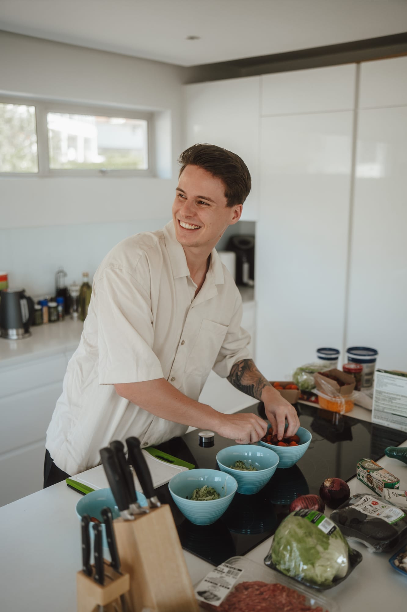 Three bedrooms are elegantly decorated in natural hues, with crisp white linen and concealed cupboards.